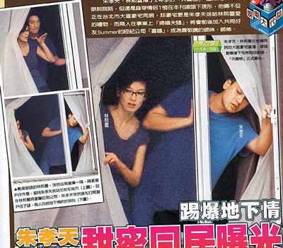 臺(tái)灣《蘋果日?qǐng)?bào)》消息,《壹周刊》是在2007年7月出刊的雜志,以“踢爆地下情,朱孝天、林熙蕾甜蜜同居曝光”為標(biāo)題,報(bào)導(dǎo)2人在大直豪宅同居,還拍到他們身穿情侶T恤在10樓住處落地窗前聊天的畫面,遭蕾蕾告上法院。
