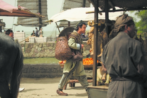 在昨日上午的開機儀式上,小沈陽就以一身古代鞋匠的落魄裝扮出現(xiàn),連腳下的布鞋也是破破爛爛的感覺。小沈陽換上造型之后自己也忍俊不禁,尤其喜愛分配給他的道具——斗笠和竹編大筐,連候場時也不離身。