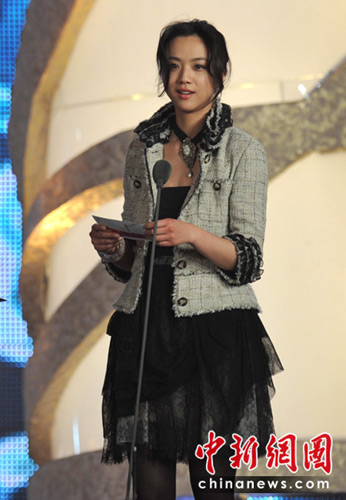 昨晚,湯唯不但是重要獎項“優(yōu)秀男演員”的頒獎嘉賓,而且還與導(dǎo)演高希希、主持人黃渤、演員郭家銘一起朗誦了《追夢獨白·新人輩出》。為什么選她?因為2006年的第6屆“百合獎”,她就憑借《燕子警察》中的女警察一角,成功“封后”摘得優(yōu)秀女演員獎。