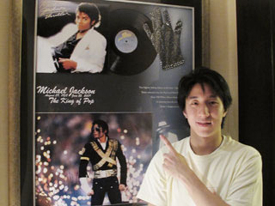 說(shuō)到偶像杰克遜,房祖名校說(shuō):“從小我就是他的粉絲,他的太空漫步舞步、還有BEAT IT的經(jīng)典動(dòng)作等等,都讓我著迷,直覺(jué)得他好酷!小時(shí)候我很愛(ài)在爺爺面前大跳這些舞步呢!”房祖名特地將銀手套用相框裱起來(lái),“其實(shí)我好想戴一下銀手套,不過(guò)舍不得而且也不想破壞偶像杰克遜的痕跡!”