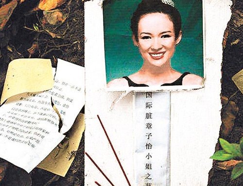 中新網(wǎng)6月6日電 據(jù)香港媒體報道稱,內(nèi)地一網(wǎng)站張貼了一張章子怡被人惡搞的相片,圖片顯示在成都一個公園的垃圾桶旁有一個貼上章子怡相片的“墓碑”,相片下寫了“國際臟章子怡小姐之墓”,墳前亦有燒完的香燭以及悼辭,但悼辭全是辱罵章子怡的字句。