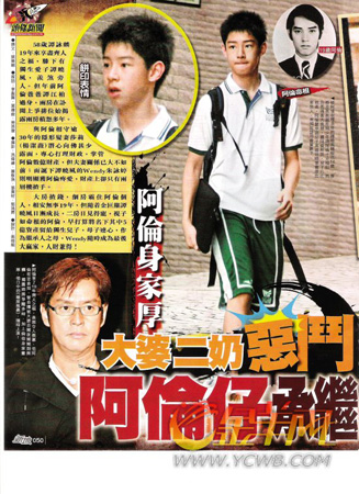 雖然現(xiàn)階段阿倫極力避免讓兒子曝光,但據(jù)知他眼見愛子外形討好,又遺傳了自己的歌唱天分,現(xiàn)已有七級(jí)鋼琴的造詣,故有意帶兒子入行。據(jù)唱片公司職員爆料:“阿倫整天在高層面前提起自己的兒子,說他長(zhǎng)得帥唱歌又好!逼鋵(shí),除了為兒子鋪好路,身家豐厚的阿倫也在積極為愛子的生活作打算。雖然阿倫大部分財(cái)產(chǎn)都由發(fā)妻莎莉掌管,但真正歸莎莉所有的物業(yè)只有約值3000萬元,而保守估計(jì)阿倫坐擁逾5億資產(chǎn)。為防他日“兩房”爭(zhēng)寵,同時(shí)也為兒子的將來著想,據(jù)知阿倫早就打算將資產(chǎn)轉(zhuǎn)到兒子名下!岸獭盬endy雖然現(xiàn)在僅有兩個(gè)房子在手,但作為5億家產(chǎn)繼承人之母,下半世當(dāng)然不用愁!(阿文)