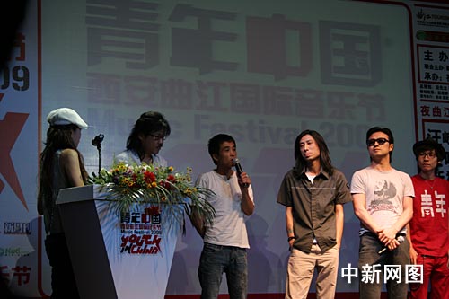 中新網7月2日電(楊洋) “青年中國(西安曲江)國際音樂節(jié)——2009新聞發(fā)布會暨青年音樂發(fā)展計劃啟動儀式”于7月2日在京舉行。汪峰、張楚、謝天笑等知名音樂人到場助威,現(xiàn)場氣氛火爆。本次音樂節(jié)將于7月10日在西安曲江開幕,是國內第一個時尚視覺音樂節(jié)。