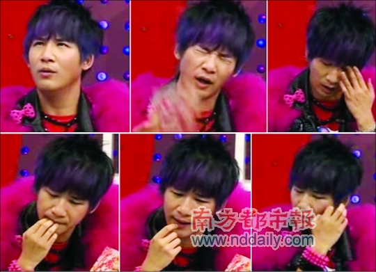 在后面的節(jié)目中,對于男女主持的提問,大張偉咬手指、挖眼屎,拿紙巾擦汗,最后索性脫掉了外套喃喃自語,“我今天怎么了!”完全不在狀態(tài)(見上圖)。大鵬終究也被逼“毛”了,突然起身丟下提問稿憤怒離場,直播節(jié)目被迫中斷。這段視頻曝光后,不少網(wǎng)友認(rèn)為大張偉的狀況是犯了毒隱,“這家伙肯定是溜冰(指吸食某種毒品)了”。(記者 黃銳海 實習(xí)生 劉文斯)
