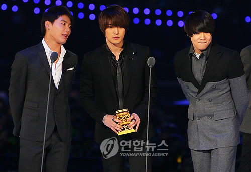中新網(wǎng)11月23日電 與SM娛樂公司發(fā)生糾紛的東方神起3名成員(細(xì)亞俊秀、英雄在中、秘奇有天),21日出席了“2009M-net音樂頒獎(jiǎng)禮(MAMA)”。自7月底與SM發(fā)生專屬合同糾紛以后,這是他們3人首次重登國內(nèi)舞臺(tái)。