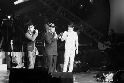 而師父趙本山和師弟小沈陽(yáng)的陸續(xù)登臺(tái)獻(xiàn)唱,更是掀起高潮。小沈陽(yáng)狂飆高音現(xiàn)場(chǎng)演唱了《三槍拍案驚奇》的主題曲《我只是個(gè)傳說(shuō)》,隨后師兄弟倆合唱了一首《我的好兄弟》。之后師父趙本山的登臺(tái)讓全場(chǎng)觀眾報(bào)以雷鳴般的掌聲。趙本山身著黑色休閑裝酷勁十足,現(xiàn)場(chǎng)用調(diào)侃的方式介紹了所有樂(lè)隊(duì)成員,逗的臺(tái)下觀眾前仰后翻。