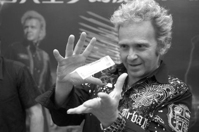 昨天下午,與哈拉利相比顯得少言寡語的蓋洛斯,卻用實(shí)際行動(dòng)成了攝影、攝像機(jī)的焦點(diǎn),掉包記者緊攥在手里的硬幣,讓皮夾子憑空著火,燒毀的錢幣卻赫然出現(xiàn)在未曾開封的小包裝白糖中——蓋洛斯的每一個(gè)“節(jié)目”都頗有上春晚與劉謙一較高下的潛質(zhì)。事實(shí)上,蓋洛斯也是美國電視屏幕上家喻戶曉的明星,他的“今夜秀”連續(xù)創(chuàng)下收視佳績(jī),早在劉謙之前,就成為真正意義上的 “魔術(shù)明星”。蓋洛斯的 “粉絲”還包括簡(jiǎn)·方達(dá)、阿諾德·施瓦辛格、達(dá)斯汀·霍夫曼、艾迪·墨菲、羅賓·威廉姆斯、尼古拉斯·凱奇、湯姆·漢克斯等,星光璀璨,不勝枚舉。