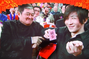 獲得語言類一等獎的本山大叔在元宵晚會上依然是只露面不表演。去年元宵晚會上,小沈陽一人登臺獨唱《大!,不僅現(xiàn)場唱得趙本山淚水漣漣,也讓大家對師徒二人之間的情誼留下深刻印象。此前有消息稱今年元宵晚會小沈陽和王小利將表演二人轉(zhuǎn)絕活,但最終小沈陽、王小利及趙本山首位歌手徒弟湯潮合唱了一首歌曲《美了美了》,以此“慶祝”得獎之后的好心情。