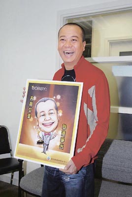 中新網(wǎng)11月14日電 歐陽(yáng)震華(Bobby)憑劇集《賭場(chǎng)風(fēng)云》入選“第35屆國(guó)際艾美獎(jiǎng)”最佳男主角5強(qiáng),無(wú)線為隆重其事,昨日特別安排制作資源部副總監(jiān)樂易玲陪同Bobby于電視城舉行記者會(huì),更即場(chǎng)送上一幅寫上“名揚(yáng)艾美·為港爭(zhēng)光”的Bobby得獎(jiǎng)畫板示鼓勵(lì)。