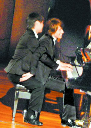 周董彈琴說愛的《不能說的秘密》大紅,言承旭在新戲《星心的淚光》也化身“琴圣”,可惜他琴藝不佳,須由替身“胯下”代彈,兩人十分尷尬,頻頻笑場(chǎng),變成“男體交纏”的詭異畫面,引起臺(tái)下從外地趕來捧場(chǎng)的師奶粉絲兼臨時(shí)演員陣陣驚呼,他拍完后也直呼有趣,“我本來就沒鋼琴基礎(chǔ),為拍演唱會(huì)表演已苦練了劇情需要的幾首曲子,但當(dāng)天拍攝的曲目太難,因此讓替‘手’上場(chǎng)。”