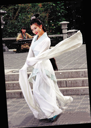 昨天,有門戶網(wǎng)站曝光了高希希版《三國演義》里貂蟬的舞姿。據(jù)悉,劇中的貂蟬有大量舞蹈戲分,正是因為貂蟬這兩段絕美的舞蹈,才分別吸引了董卓和呂布,成就了王允的連環(huán)計,也成就了《三國》故事的開篇,因而對整個故事發(fā)展極為重要。為此,劇組特意找到專業(yè)研究漢代舞蹈的老師,為飾演貂蟬的陳好編排動作,以展現(xiàn)貂蟬的柔、美、媚。不過,陳好在練習中可算吃夠了苦頭,她說:“舞蹈部分的戲服都是薄紗做的,還有3米多長的兩只水袖。這個水袖動作,我覺得是最難的!