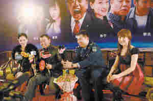 在昨天的關(guān)機(jī)儀式上,潘長(zhǎng)江對(duì)女兒潘陽(yáng)的成熟表現(xiàn)頗感欣慰。據(jù)該劇編劇透露,第二部特地給潘陽(yáng)的戲份加大了難度,還增加了潘陽(yáng)跟男朋友的“親熱戲”,他還報(bào)料說(shuō),潘陽(yáng)拍一場(chǎng)“擁抱戲”的時(shí)候,旁邊有很多人“嫉妒”,還有人手里拿著磚頭、石塊準(zhǔn)備“暴打”一頓飾演潘陽(yáng)男朋友的演員。潘長(zhǎng)江一旁插話說(shuō):“說(shuō)‘嫉妒’不就是說(shuō)我嘛,編劇這么寫(xiě),作為導(dǎo)演我是很尊重的,肯定是情節(jié)發(fā)展的需要!彪m然表現(xiàn)得滿不在乎,潘長(zhǎng)江還是流露出對(duì)女兒未來(lái)的關(guān)切,“我覺(jué)得她可以多演演年代戲,尤其是‘麻辣公主’那類的角色,跟她自己的個(gè)性比較像!迸赃叺呐岁(yáng)“不樂(lè)意”了:“我麻辣嗎,沒(méi)有吧!”
