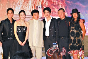 成龍現(xiàn)場只肯透露少少劇情,“那是戰(zhàn)爭故事,我是個上年紀的大兵,把小將王力宏綁架,中途發(fā)生不同事情,你會看見幽默、武打和悲情。”他說,關于小將的人選其實本來有三個人選,分別是房祖名、吳彥祖、王力宏,成龍?zhí)寡员緛碜约簩僖夥孔婷,但后來覺得父子兵上場一對戲很容易笑場,成龍馬上“大義滅親”停用兒子!拔冶緛磉是要選吳彥祖,因為他是我自己一手帶出來的”,但由于大哥與吳彥祖剛剛合作完新宿事件,而夫人林鳳嬌力薦王力宏,他笑對王力宏稱“你一定要感謝那位林小姐,小房(祖名)子他媽!”發(fā)布會儼然成了成龍的粉絲見面會。來自韓國的劉承俊說接到成龍邀請的時候,他激動到“真的流眼淚了!