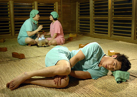據(jù)韓國《中央日報》報道,神童和金信瑛在《賢內(nèi)助女王》中出演了一對在桑拿房公共場合不顧禮儀夸張地相互示愛的情侶。這對情侶讓被從家里趕出來孤單的躺在桑拿房的崔哲鎬(音)的內(nèi)心無比郁悶。崔哲鎬(音)被妻子趕出家門后為了平靜心情去了桑拿房,但是被神童和金信瑛這對情侶咋咋呼呼夸張的行動弄得郁悶不已。電視劇滑稽地表現(xiàn)了崔哲鎬煩躁郁悶的形象。