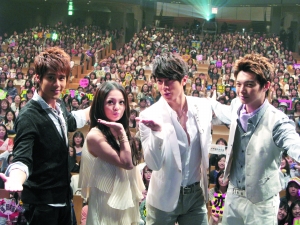 吳尊與張韶涵這對(duì)緋聞情侶,與辰亦儒、胡宇崴近日一起到大阪宣傳《公主小妹》。影迷見面會(huì)中,張韶涵見到臺(tái)下全是女性影迷,馬上轉(zhuǎn)頭對(duì)吳尊撒嬌,指自己若對(duì)著女生告白很怪,所以叫吳尊望著她。