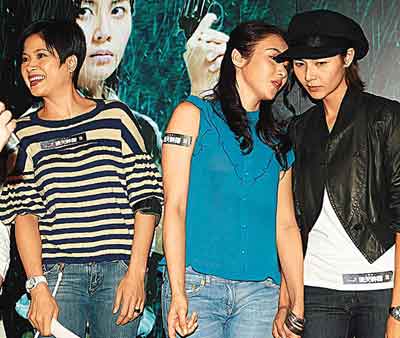 中新網(wǎng)10月17日電 鄭伊健新舊戀人蒙嘉慧和邵美琪昨日公開碰頭,二人沒有正面交流,在臺上合照時(shí)分別站在黎姿左右,蒙嘉慧突然與黎姿姊妹情深,手拖手耳語,但亦難掩尷尬神色,相反見慣風(fēng)浪的邵美琪則沒有理會(huì)蒙嘉慧,在活動(dòng)完畢后即箭步離場。
