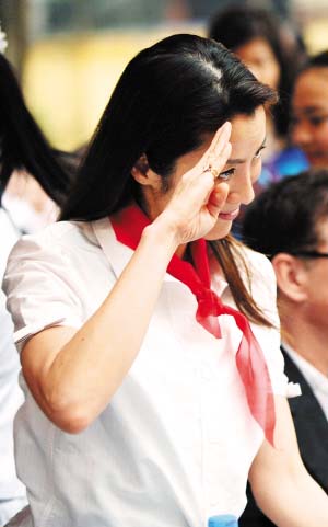 紫瓊昨日在河內(nèi)出席由“國(guó)際汽車聯(lián)合會(huì)”舉辦的慈善活動(dòng),可能男友讓·托德是法拉利老總的關(guān)系,楊紫瓊身兼“公路安全”宣傳大使的重任,此次在河內(nèi)就率先示范戴頭盔的安全意識(shí),越南小朋友還為楊紫瓊系上“紅領(lǐng)巾”。