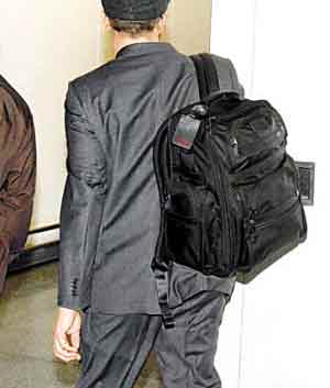萊昂納多戴上黑色帽、身穿黑色西裝,背一個黑色背囊,急步離開。