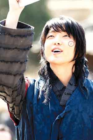 韓國人氣偶像李準(zhǔn)基前日以古裝扮相,率領(lǐng)樸時厚、韓孝珠及李英雅等演員出席SBS劇集《一枝梅》的外景場地竣工儀式。該劇的大型外景地耗資約780萬人民幣興建,有望借李準(zhǔn)基的號召力推動當(dāng)?shù)芈糜螛I(yè)。為劇集積極減掉7公斤肥肉的李準(zhǔn)基,苦練騎馬及各種武術(shù)之外,又不惜親身拍攝動作場面,以致左邊面頰受傷(見左圖圓圈處),令“粉絲”相當(dāng)心疼。由于張東健早于15年前也曾扮演過“一枝梅”,近日還有網(wǎng)友將新舊“一枝梅”翻炒出來做一番比較。
