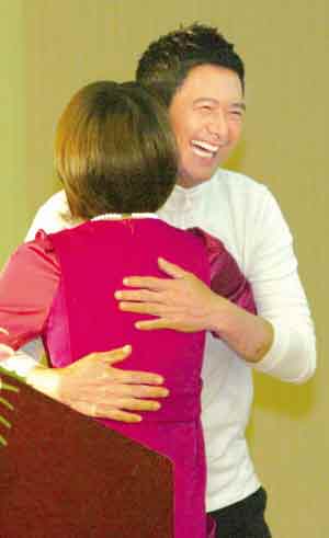 當(dāng)晚,黃石市政府還舉辦了慈善晚會,當(dāng)被問到會有什么慈善的舉動時,周潤發(fā)說:“你晚上去嗎?晚上去你就知道了!币幌盗型嫣珮O的回答手法,讓記者們相對無語。而且看他一臉無辜的樣子,連氣也沒有。
