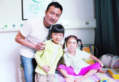 圖文:胡軍帶女兒看望地震受傷小朋友