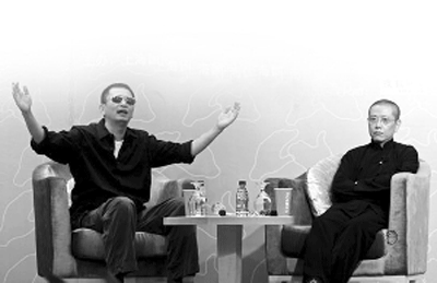 昨天的這個論壇雖是王家衛(wèi)主持,但是他幾乎把所有時間留給陳丹青,自稱自己欽佩陳丹青多年,甘當(dāng)配角。但是陳丹青卻一點也不給他面子。兩位大師一上臺,記者們就紛紛拍照,閃光燈閃成一片。誰料,陳丹青剛跟大家問過好,就指著王家衛(wèi)說:“我是被他綁架來的。”他接著訴苦道,“坐在這臺子上,我不能抽煙。我一不抽煙智商就下降一半。雖然我知道抽煙不好,F(xiàn)在你們還不停拍我,我都快說不出話來了。”談了一會,陳丹青突然又來了句:“今天我好倒霉,先是被綁架來,現(xiàn)在發(fā)現(xiàn)襪子沒穿好,襪子幫太短,我不能把腿蹺著坐,老這樣端端正正地坐著,真累!”