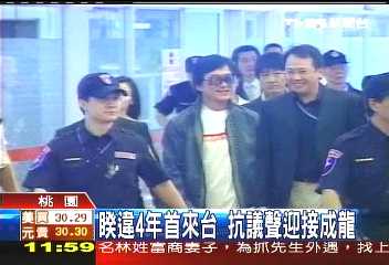 報道說,在現(xiàn)場有桃園縣議員齊聲高呼:“滾蛋!滾蛋!”也有民眾支持偶像:“歡迎成龍!歡迎成龍!”