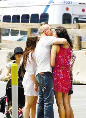 53歲的硬漢明星布魯斯·威利斯帶著29歲的小女友艾瑪和女兒一起散步。艾瑪比準(zhǔn)繼女僅大11歲,三人有說(shuō)有笑儼然是一家人,有年輕小女友相伴布魯斯格外心花怒放,不時(shí)摟住女友一頓狂親大曬幸福。