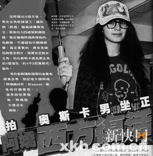 艷照爆出5個(gè)月后,照中主角密謀復(fù)工。鐘欣桐(阿嬌)積極練舞學(xué)英文,英皇出力四處幫阿嬌搭路,最近雖傳阿嬌將接拍內(nèi)地劇集,不過據(jù)知只聞樓梯響,真正落實(shí)的,原來是接拍好萊塢西片,阿嬌落實(shí)坐正做女主角,聯(lián)同奧斯卡提名男主角,投入1億港元制作,提早與世界影壇接軌。有份參與攝影指導(dǎo)的著名人士攝影師黃岳泰對記者大贊阿嬌:“阿嬌幾好,好sweet,西方人好喜歡她!