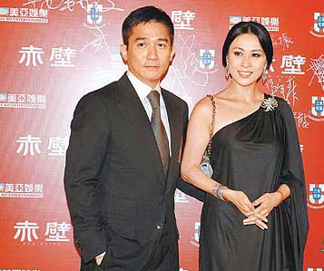 劉嘉玲與梁朝偉恩愛(ài)出席《赤壁》慈善首映禮。
