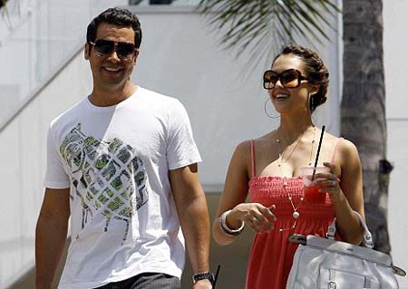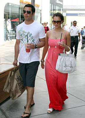 杰西卡和老公甜蜜逛街。