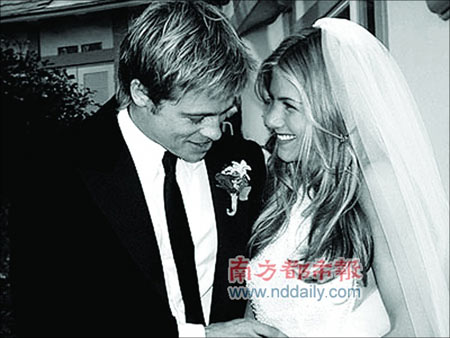 2000年7月29日,皮特和前妻珍妮佛·安妮斯頓的婚禮卻是相當壯觀。這場在加州馬里布海灘舉行的婚禮,共耗資百萬美元,宴請兩百名賓客,成為當年的頭號婚禮。這場婚禮相當出彩,花費了7.5萬美元用于購置鮮花,同時還用了2萬美元買了數量龐大的煙花。許多好萊塢巨星蒞臨現場。