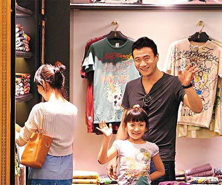 胡軍將赴不丹參加劉嘉玲、梁朝偉婚禮,昨日他攜妻女購(gòu)物。
