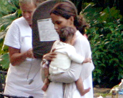 據(jù)國(guó)外媒體報(bào)道,41歲的哈莉·貝瑞上周被拍到抱著女兒娜拉出現(xiàn)在洛杉磯的一個(gè)公園里,哈莉·貝瑞的母親Judith Ann也在場(chǎng),不過,小娜拉的頭埋在媽媽懷里,讓人看不清長(zhǎng)相。