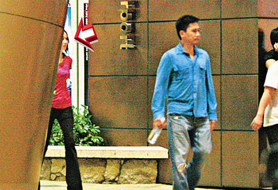 前晚9時半左右,身穿藍(lán)色恤衫及牛仔褲的偉仔,拿著礦泉水瓶走出電影院,而身穿粉紅色緊身T恤和黑褲的嘉玲則緊隨其后。兩人隨后由司機(jī)駕駛七人車接載離開,雖然結(jié)婚只有短短個多星期,但偉仔和嘉玲明顯心廣體胖,身穿短袖T恤的嘉玲更露出一雙麒麟臂。