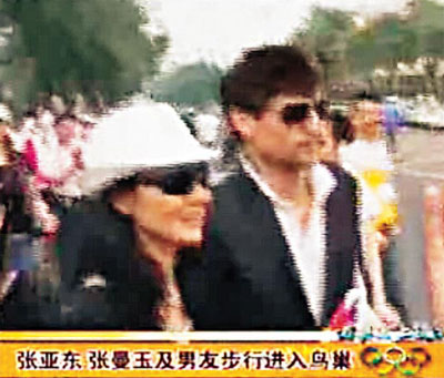 張曼玉和男友到達鳥巢,觀看奧運開幕式。