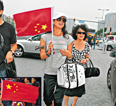 據(jù)香港媒體報(bào)道,昨日郭晶晶與吳敏霞成功奪金后,章子怡于下午約4時(shí)與母親離開水立方,心情興奮的她不停揮動中國國旗,但細(xì)看之下,她拿得竟是“倒裝”的國旗。想必是看到中國隊(duì)員再奪金,興高采烈地子怡并未留心此烏龍事件。