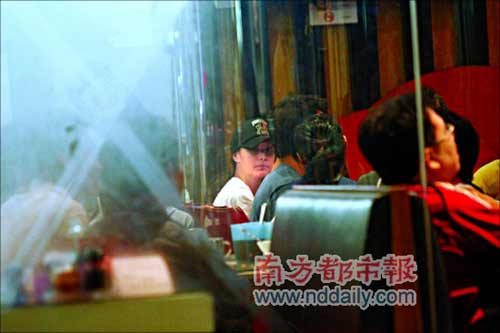 阿嬌沒有發(fā)現(xiàn)記者時(shí),原本與一眾好友吃火鍋邊吃邊笑,其后知道門外有記者,即渾身不自然起來,一時(shí)以手遮面,頭頂?shù)拿弊佑,表現(xiàn)得十分尷尬,她待了5分鐘已按捺不住,此時(shí)席間各人突然做出很多古靈精怪的動(dòng)作,阿嬌即從座位轉(zhuǎn)身離開,這種招數(shù)很難避過記者耳目,阿嬌只好拉低帽子急步出門,然后跳上保姆車,車輛直駛到她家門口,打消了與好友聚會(huì)的興致。