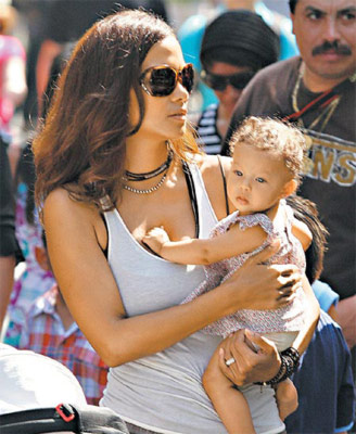 據(jù)臺灣媒體報道,5個半月大的娜拉有一雙藍(lán)眼睛與一頭卷發(fā),活潑好動,不時被哈莉·貝瑞與外婆逗得咯咯笑,相當(dāng)可愛。哈莉·貝瑞是黑白混血,孩子的爸爸是白人男模蓋柏瑞歐布萊,女兒的膚色比她更白。哈莉·貝瑞產(chǎn)女后堅持不出賣女兒照片撈錢,7月曾有記者偷闖她家花園拍到她們母女倆的照片,當(dāng)時寶寶剛好趴在她肩上,看不到臉蛋,哈莉·貝瑞獲悉后火冒三丈,揚言要告媒體。