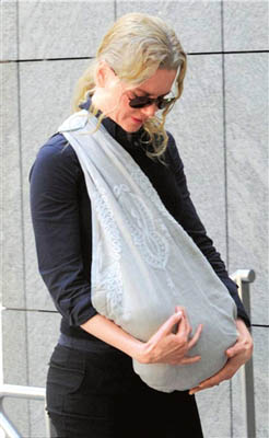 妮可·基德曼前日攜兩個月大的小女兒公開露面,但妮可用布袋將女兒綁在胸前,隱約可見小女兒迷人的草莓金色頭發(fā),繼承了母親妮可·基德曼的基因。