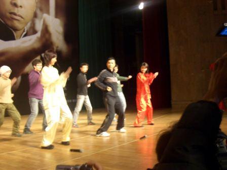 中新網(wǎng)11月28日電 11月27日,甄子丹來到北京大學(xué)百年講堂,為功夫賀歲片《葉問》宣傳造勢(shì)。當(dāng)天正趕上甄子丹的生日,北大百名學(xué)子為甄子丹合唱生日快樂歌,場(chǎng)面十分溫馨。甄子丹被學(xué)生們的熱情所感動(dòng),非常開心,更擺開架勢(shì)教北大學(xué)子打起了詠春拳。甄子丹稱,“《葉問》不只是功夫片,它在展示了詠春拳魅力的同時(shí),更發(fā)揚(yáng)了一種精神,我相信那是中國(guó)人的精神!