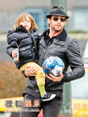 圖文:最性感男星休·杰克曼街頭大曬父愛