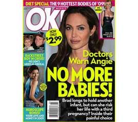 中新網(wǎng)12月31日電 剛出爐的“OK!”雜志,嚴(yán)重警告茱莉不能再懷孕,否則是跟自己的身體開玩笑!