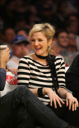 最近心情大好的德魯·巴里摩爾回到了洛杉磯,頭一件事情就是去觀看了洛杉磯湖人的NBA比賽,賽場的德魯·巴里摩爾不時(shí)開懷大笑。當(dāng)晚的裝扮更是讓人看著舒服的同時(shí),星味十足,條紋寬肩上衣配黑色圍巾,黑色仔褲黑色高跟鞋,青春洋溢,實(shí)在好看。
