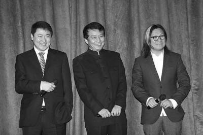 更絕的還在揭幕環(huán)節(jié),吳君如煞有介事地宣布現(xiàn)場(chǎng)揭幕將使用高科技聲控技術(shù),全場(chǎng)嘉賓好奇地等待答案揭曉,只聽吳君如吐出一句,“請(qǐng)童剛局長(zhǎng)和韓三平董事長(zhǎng)站在臺(tái)上拍三下手掌,陳可辛、黃建新、于冬(保利博納董事長(zhǎng))你們站在兩旁用手把幕簾拉開……”,這回全場(chǎng)差不多要笑暈了。記者 蔡穎