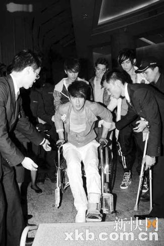 不知道吳尊是不是因為腳太痛,一度返回后臺,到“安可”部分只見他一拐一拐地走,但仍硬撐著跳舞,大東大贊吳尊很Man,開場前拒絕攙扶以求適應臺上的演出。繼上次大東腳傷坐輪椅,這次輪到吳尊坐輪椅出席慶功宴,大東說腳仍有痛楚需要敷冰,吳尊則說:“腳腫得厲害要只能腳尖站著,因腳傷有很多環(huán)節(jié)想在個唱上表演都不行,我擔心得忘記歌詞,腦海一片空白,這次受傷令個唱有遺憾!庇终f醫(yī)生要他休息六至八星期,但不用開刀,相信不會影響馬來西亞的演唱會。