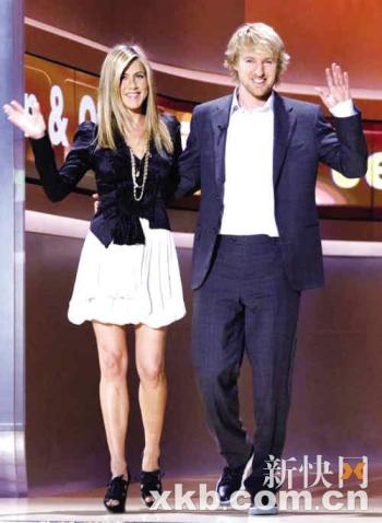 珍妮佛·安妮斯頓和歐文·威爾森近日為電影《馬利和我》四處宣傳。日前,他們來到德國參加一個當(dāng)?shù)刂碾娨暰C藝節(jié)目。