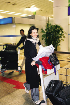 昨晚8時25分,奧斯卡得主、法國影星朱麗葉·比諾什由韓國首爾飛抵上海浦東國際機(jī)場。比諾什此次抵滬可謂十分低調(diào),現(xiàn)身機(jī)場時僅有一名男助理陪同。機(jī)場沒有影迷接機(jī),也沒有其他媒體來競相采訪,接機(jī)的主辦方同樣沒有拿出顯眼的標(biāo)語,現(xiàn)場十分冷清。