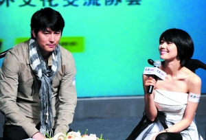 剛在亞洲電影大獎(jiǎng)中奪得“最佳男配角”的韓星鄭宇成,日前偕高圓圓、“超女”譚維維等人在北京出席電影《成都,我愛你》記者會(huì)。