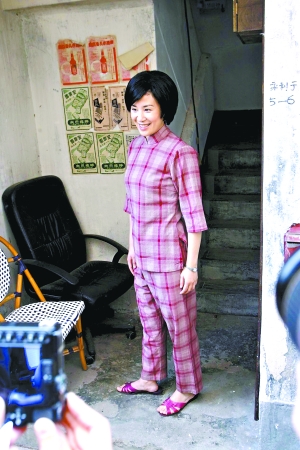 出現(xiàn)在片場(chǎng)的吳君如穿一身格子套裝,很有鄉(xiāng)土味。她說母親來探班的時(shí)候也嚇了一跳,沒想到在劇中的造型是這樣的。但吳君如說片中的角色其實(shí)很像自己,雖然是一個(gè)很悲情的角色,但她很希望電影中的這種上世紀(jì)60年代人人為我,我為人人的精神能讓大家溫故知新。